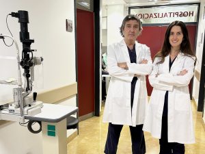 (En las fotografías, los oftalmólogos Alberto Villarrubia y Marta Villalba, de la UCSA del Hospital Arruzafa)
