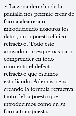 Permite el aprendizaje de una técnica de exploración ocular muy importante en la práctica clínica, pero buscando y esto sí que es importante, la comprensión de los diversos defectos refractivos.